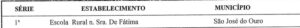Abaixo, colocamos um exemplo de histórico escolar que mostra que a pessoa cursou a 1ª série em uma escola rural: